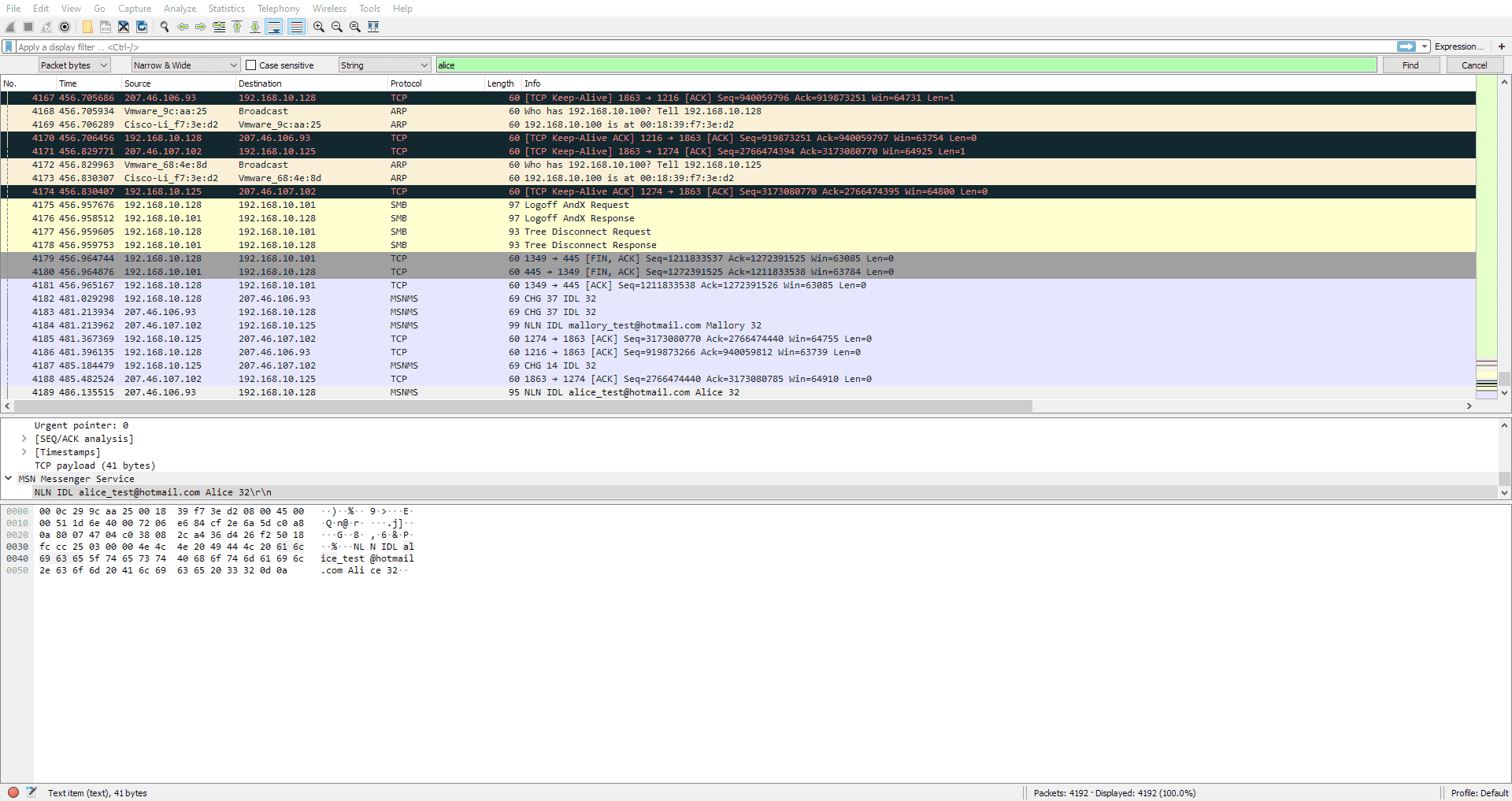 We are given another pcap. This time the server asks us for Alice’s email, so we can just search for her name.